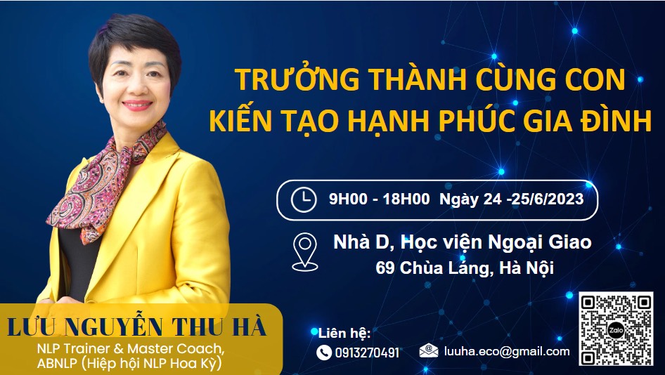 Hãy cùng Lưu Nguyễn Thu Hà - Nhà đào tạo & Huấn luyện NLP đẳng cấp quốc tế được chứng nhận bởi Hiệp hội NLP Hoa Kỳ trong chương trình Trưởng thành cùng Con - Kiến tạo Hạnh phúc Gia đình. H